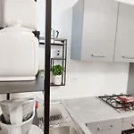 L'appartamento offre un angolo cottura attrezzato con un bollitore elettrico, un frigo e utensili da cucina, servizi per la preparazione di tè/caffè.